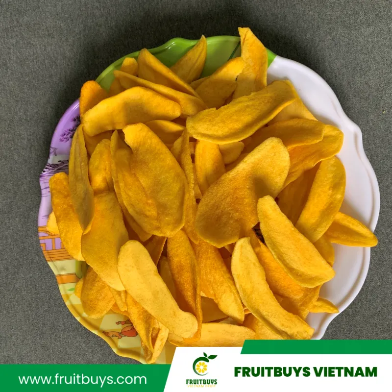 If you are interested in buying bulk-dried mangoes at wholesale price, you should contact FruitBuys Vietnam. FruitBuys Vietnam is a professional wholesale supplier and exporter of premium Exotic fruitsHealthy SnacksVegan snacksNo Sugar Snacks, and Low Sugar Snacks. We use different drying technologies such as Air Drying (AD), Freeze Drying (FD), and Vacuum Frying (VF) to produce natural and nutritious products from tropical fruits such as Banana, Dragon fruit, Durian, Jackfruit, Mango, Papaya, PassionfruitPineapple, SapodillaStrawberriesSoursopRambutanCashew nutsSweet PotatoLotusTaro, etc.