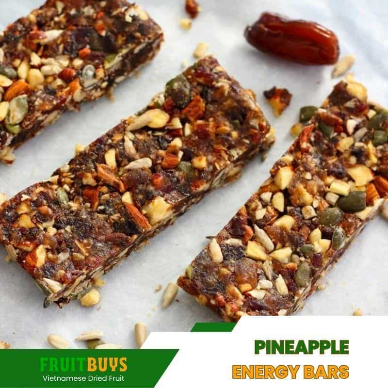 Another easy way to use freeze dried pineapple powder in your desserts is to make no-bake pineapple energy bars. Energy bars are nutritious snacks that can be enjoyed as a dessert or a pre-workout fuel. They are also great for satisfying your sweet tooth and keeping you full for longer. To make no-bake pineapple energy bars, all you need is some freeze dried pineapple powder, some oats, some nuts or seeds, some dates, some coconut oil, and a food processor. You can also add some other ingredients or flavors to customize your energy bars according to your preferences. Here are some examples of no-bake pineapple energy bar recipes: