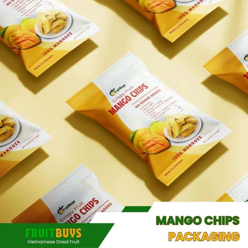 FruitBuys Vietnam’s Mango Chips are the crispy and healthy vegan snack you need to try. They are made from fresh and organic mangoes that are vacuum fried to create a crunchy and delicious treat. They are rich in nutrients, antioxidants, and flavor that can benefit your health and satisfy your taste buds. They are also packaged in eco-friendly materials that ensure product freshness and quality.